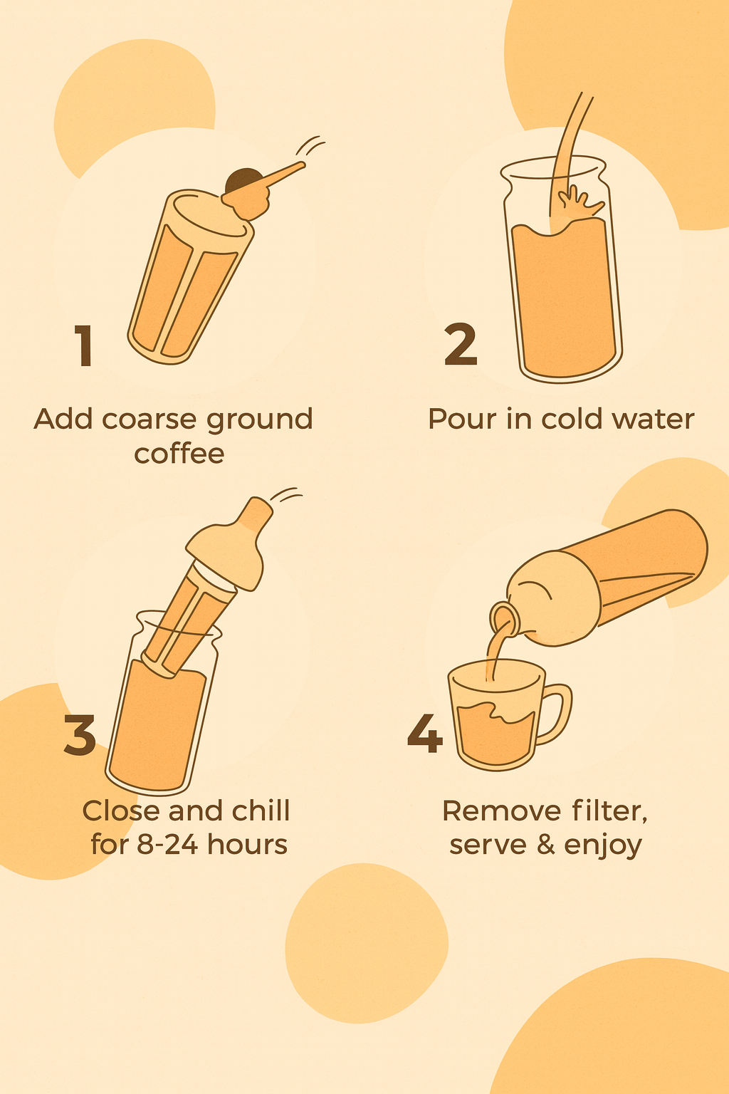 - EASY TO USE AND CLEAN: Simply add coffee grounds to the filter, fill with cold water, steep in the refrigerator, and enjoy; the detachable filter makes cleaning quick and hassle-free