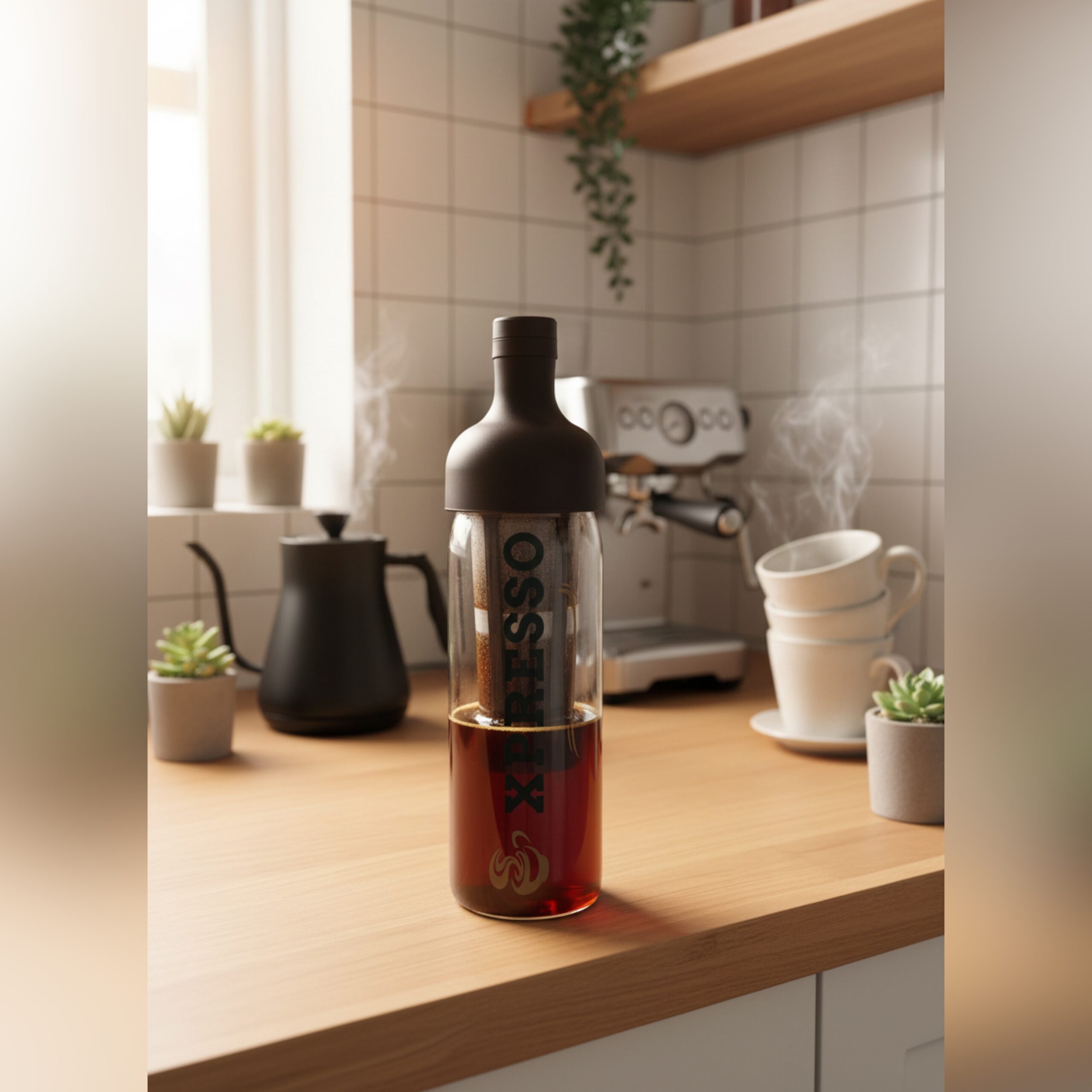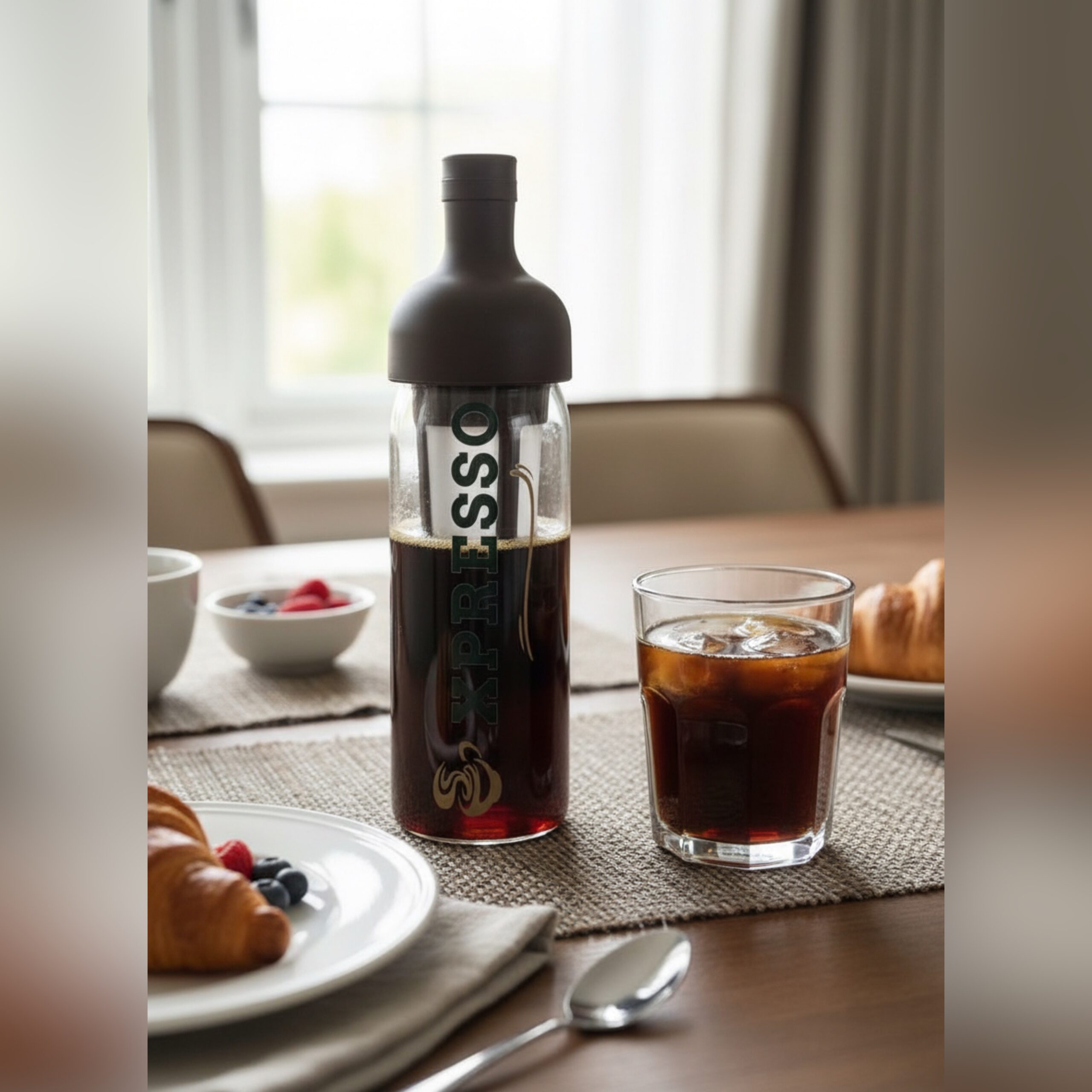 BrewChill – Premium Cold Brew Bottle by Xpresso is your perfect companion for enjoying smooth, rich cold brew coffee. A sleek and portable cold brew bottle designed for coffee lovers who want café-quality taste without the hassle. Its built-in, detachable fine mesh filter lets you steep your favorite grounds effortlessly, while the durable borosilicate glass body keeps your brew fresh, clean, and aromatic. Perfect for home, office, travel, or the gym—BrewChill combines aesthetics, convenience, and functionality in one modern design.